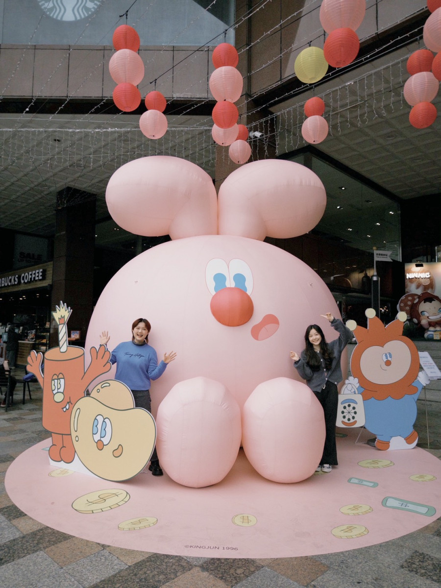走進中友百貨,最吸睛的莫過於坐鎮現場的 4 米高「KINGJUN 蠢兔」巨型氣偶,圓滾滾的俏皮造型一亮相便引爆社群打卡熱潮,成為今年台中最強的走春拍照點。此外,位於 C 棟 12 樓的 KINGJUN 主題打卡專區,更將插畫世界的療癒氛圍發揮到淋漓盡致,讓消費者在採買年貨之餘,也能沈浸在濃厚的藝術年味中。