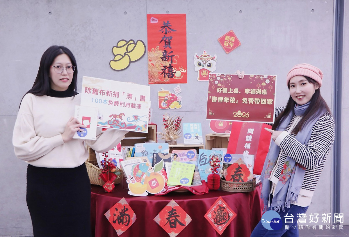另圍爐吃年夜飯是過年的重頭戲,「好書上桌.幸福滿桌」漂書活動則為讀者準備了豐盛的「書香年菜」,文學小說、烹飪、手作、旅遊、兒童圖書等各式各樣種類豐富的年菜佳餚,只要喜歡,便可以免費帶回家,希望讓大家過年期間除了享用豐盛的美食,滿足味蕾,也能豐富精神食糧。