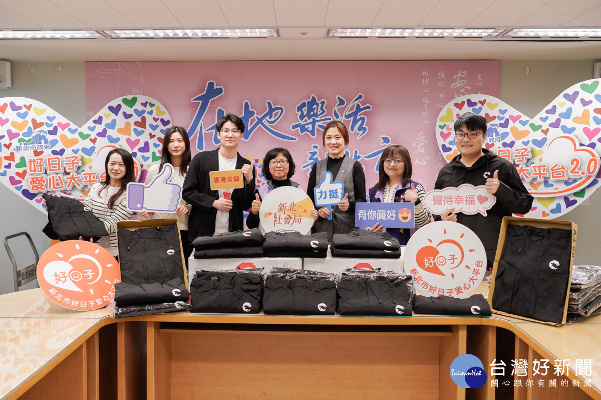 鍇睿國際數位公司及新北市電競產業總會今(28)日捐贈新北市計1,850件的連帽外套,幫助弱勢兒少及長者在寒冷季節獲得溫暖,社會局副局長許秀能代表受贈,感謝鍇睿及電競產業總會,這批全黑帥氣的外套,將轉贈給小衛星的兒少,以及五股老人公寓和仁愛之家的長者