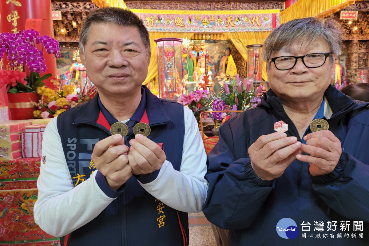 總務組長許語宸說明,歲錢於115年改版,今年馬年歲錢製作11000個,歲錢一面為雙鯉魚,呈現太極圖騰。另一面則有西港玉勒慶安宮、馬年圖像、值年千歲爺名號等,頗具意義。今年將發放7000個歲錢,值年千歲爺為薛千歲。為體恤民眾,黃勝家主委加碼發放發財金7萬6000元,有760個歲錢紅包藏著100元發財金,百元紙鈔都摺成八卦狀,討喜且祈福。