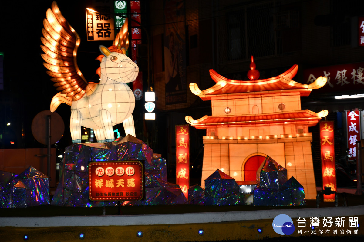 點燈儀式於10日晚間6時在慶安宮舉行,由彰化市長林世賢主持。燈區沿永樂街與民族路綿延約1,000公尺,設置4座主題城門意象燈飾,象徵古城歷史與文化傳承;三角公園圓環展出「祥城天馬」主題花燈,寓意吉祥迎春、福運降臨。彰化車站、彰化藝術館與市公所廣場前亦設置大型充氣「半半」公仔與燈籠牆,增添童趣與拍照亮點;慶安宮、關帝廟及聖王廟同步點亮花燈,共同妝點古城夜色。