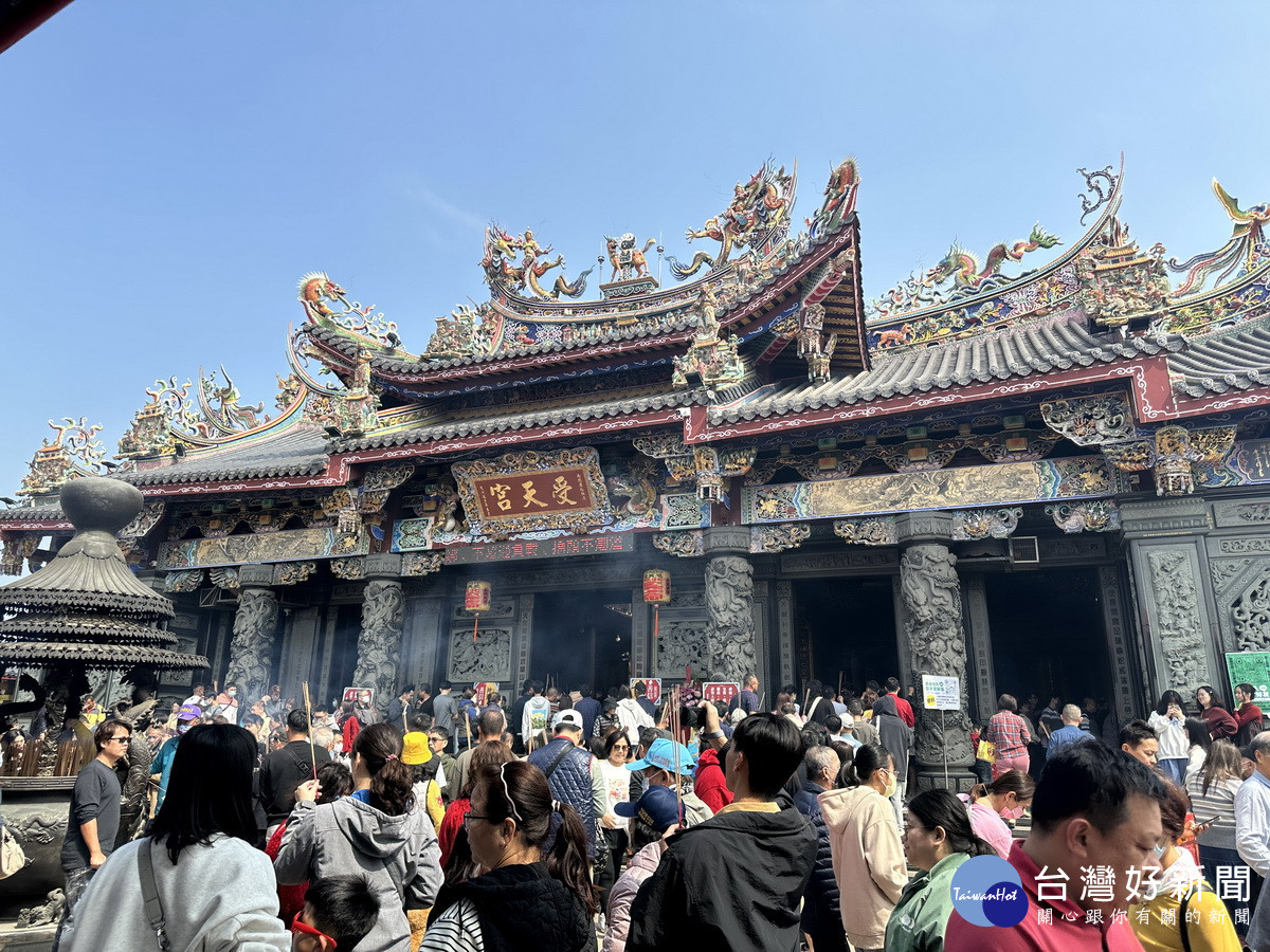 大年初一受天宮湧入約10萬人潮上香祈求玄天上帝庇佑。(記者扶小萍攝)