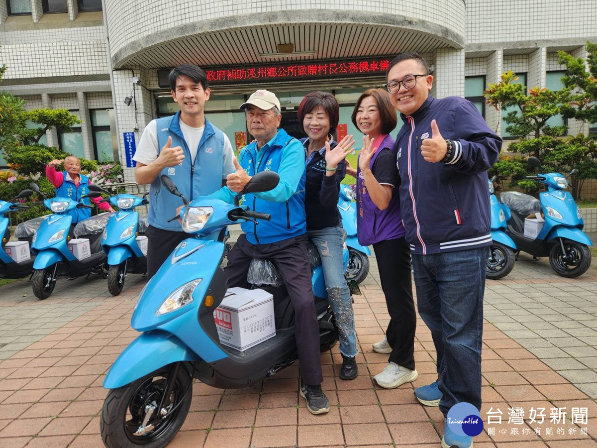 村里長是站在為民服務的最前線,為提升村里服務效能,同時落實環境永續與淨零碳排目標,彰化縣政府補助公所村里業務公務電動機車,於今(24)日上午送達溪州鄉公所。溪州鄉總共19村,有12村村長申請電動機車補助需求,每輛補助上限6萬2,000元。今廠商送達8輛三陽電動機車,由大庄、成功、舊眉、東州、潮洋、柑園、瓦厝及西畔等村村長前來領取;餘4輛Gogoro電動機車,擇日再行送達,將分配至水尾、三圳、溪州及張厝等村,未來都將投入村里的公共服務與落實低碳交通。