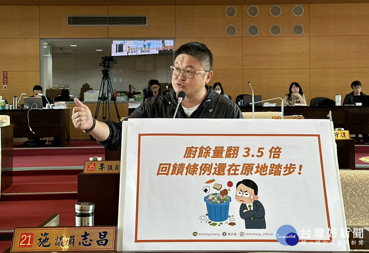 台中市議員施志昌今(27)日針對「外埔綠能生態園區」擴建計畫提出強力質詢。他揭露園區廚餘處理量即將從每日100公噸大幅提升至350公噸,地方環境負荷翻轉3.5倍,然而現行回饋金制度卻存在嚴重漏洞,導致新增的200公噸處理量完全無法換算為地方回饋金。施志昌嚴正要求市長盧秀燕立即啟動自治條例修法,落實「權責相符」,不要讓外埔鄉親「流汗又流淚」。