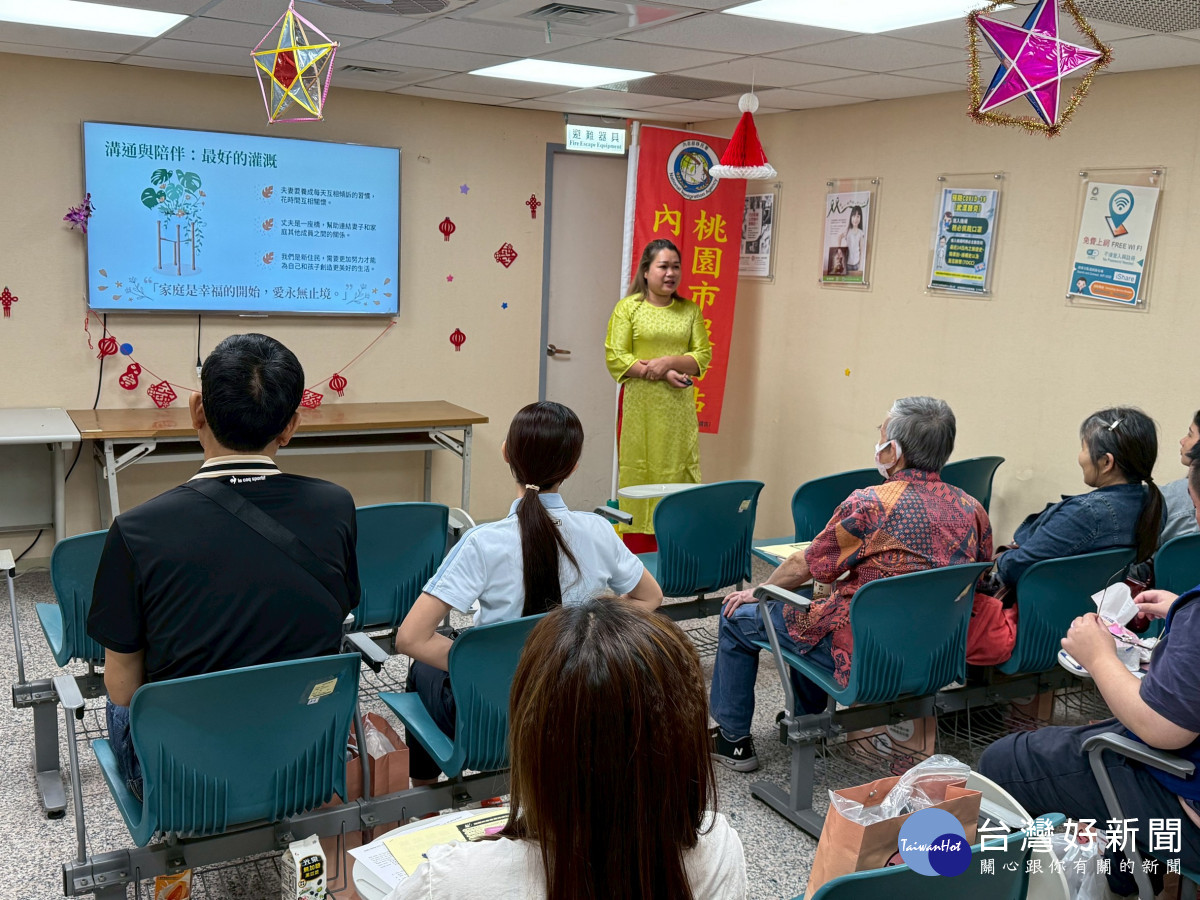 在家庭經營方面,阮講師鼓勵學員學習溝通與陪伴,認為這是經營家庭關係的重要關鍵。她建議夫妻之間應培養每日互相傾訴的習慣,花時間互相關懷,並形容夫妻關係如同一座橋,連結彼此與整個家庭的關係。她也提醒,新住民須付出更多努力,為自己與孩子創造更美好的生活。