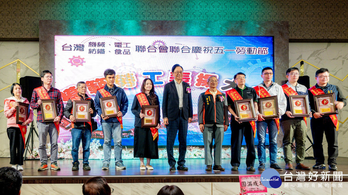 桃園市長張善政24日下午前往中壢區,出席「台灣機械、電工、紡織、食品業聯合會慶祝五一勞動節聯合表揚活動」。張市長表示,五一勞動節將至,今日特別表揚110位模範勞工,並向所有辛勤付出的勞工朋友致上誠摯敬意。