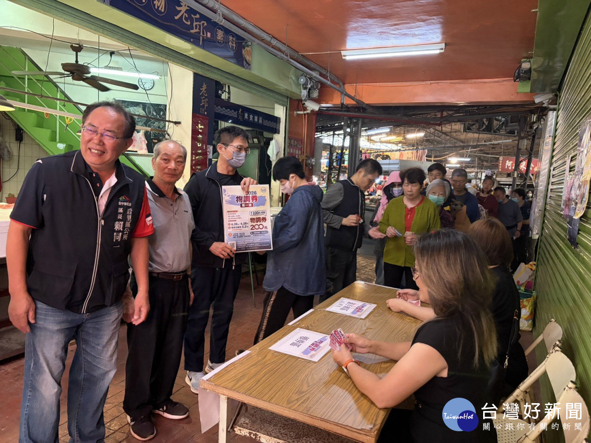 區長賴同一指出,民眾持現金100元即可兌換200元物調券,可從生鮮食材到生活用品等,通通有折扣,讓民眾用最划算價格一次買齊,除了促進地方經濟成長之外,更能讓市場、商圈採買更有感。