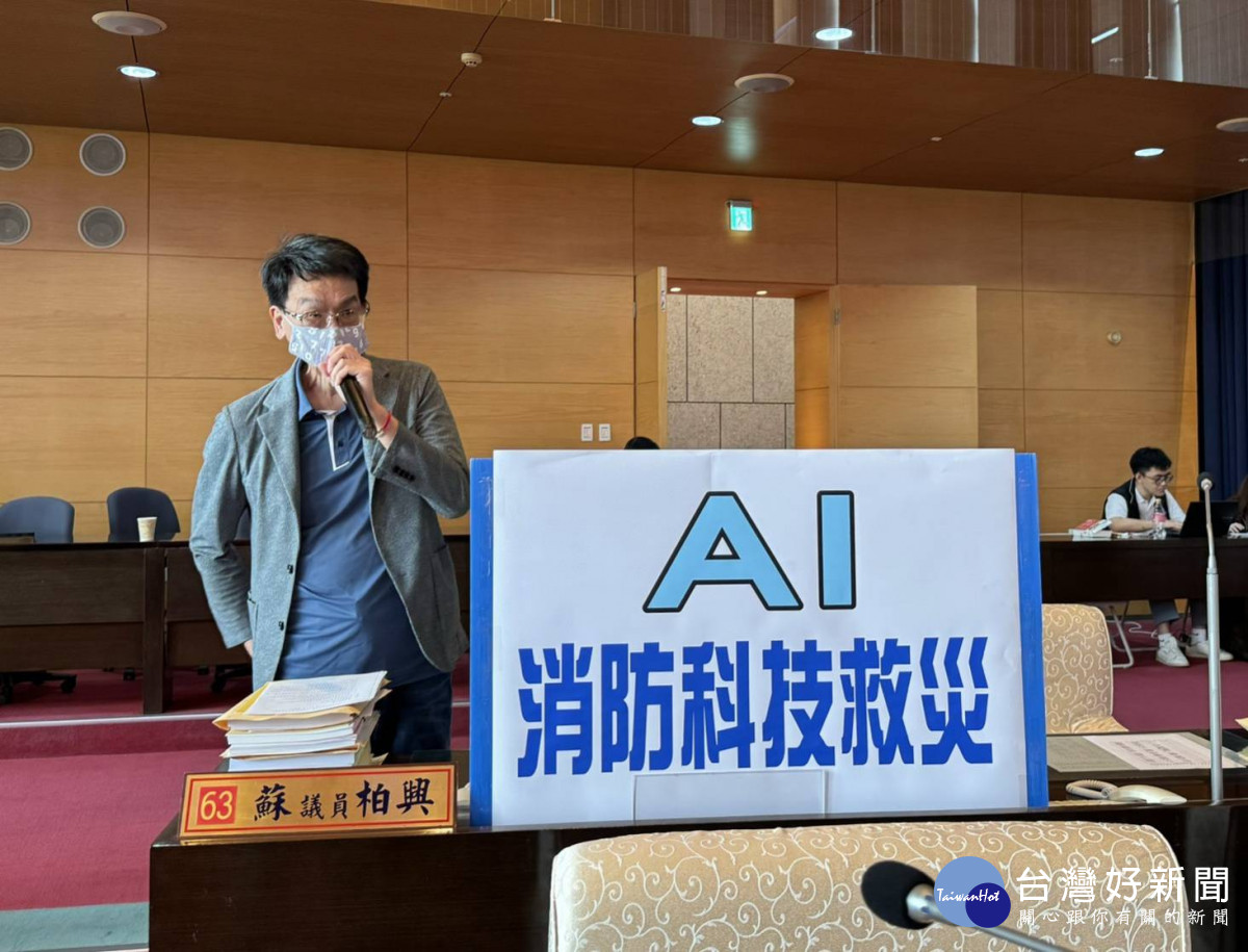 台中市議會定期大會警消環衛業務質詢,市議員蘇柏興關切AI消防科技救災議題,並要求環保局加速去化大里掩埋場的垃圾。
