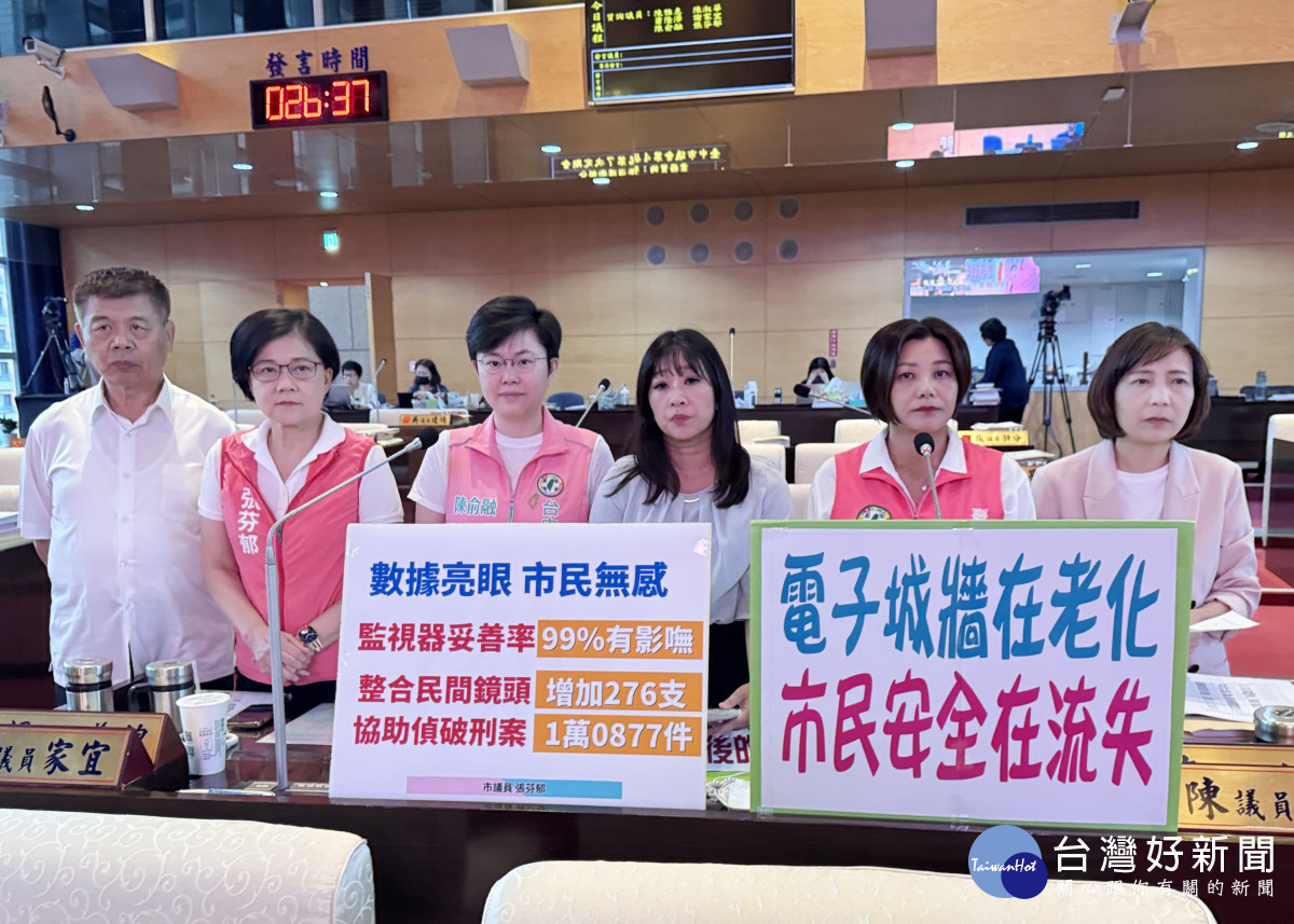 市議員陳雅惠、張芬郁、陳淑華、陳俞融、謝家宜、蕭隆澤29日在市議會警消環衛委員會業務質詢,關心台中監視器老舊問題,要求加速設備太舊腳步,避免讓台中市的電子城牆淪為「看得到、卻用不到」的科技空殼。市議員張芬郁還表示,警方自誇去年整合民間及其他公部門鏡頭共3314支,協助偵破的刑案件數也增加128.7%,既然成效良好,可提供維護津貼或通訊費用補貼,讓民間監視器為治安效力。