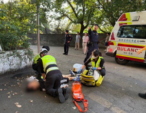 中和警分局交通分隊日前獲報於中和區民安街有民眾倒地情事,經了解為胡男(57歲)疑運動時因身體不適倒地,中和警分局交通分隊員警凃竣猛、黃奕誠、連翰祥、楊惟荏等員立即攜帶AED前往現場施作CPR並同步通報119。員警到場後發現胡...