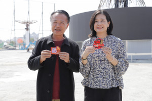 嘉義縣長翁章梁、觀光署長陳玉秀等人今日齊聚2026台灣燈會主燈「光沐—世界的阿里山」前進行開工祭拜/嘉義縣府提供大年初五開工,嘉義縣長翁章梁、觀光署長陳玉秀等人今(21)日齊聚2026台灣燈會主燈「光沐—世界的阿里山」前進行開...