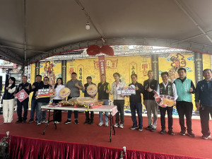 南投縣名間鄉著名的松柏嶺受天宮延續傳統舉辦擔桃活動,26日於受天宮廟程廣場,為2026年受天宮元宵系列活動「天官賜福日 米糕慶元宵」舉行記者會揭開序幕,管委會主委陳登岳歡迎全國大眾正月十五及十六參與擔米糕與8888斤米糕桃...