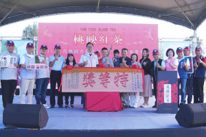 「114年度桃園市優質紅茶評鑑比賽」頒獎典禮10日假龍潭區石管局大草坪盛大登場,得獎茶農、愛茶人士與市民朋友齊聚一堂熱鬧非凡,大家共同見證榮耀時刻。今年共有460點茶樣參與評鑑(小葉種275...