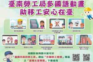 為協助外籍移工儘快適應在台生活與職場環境,台南市府勞工局製作多國語言宣導動畫,內容涵蓋法令遵循、生活安全及勞動權益等。勞工局表示,期能藉由多語宣導與教育,減少誤解與違規情事發生,降低移工失聯...