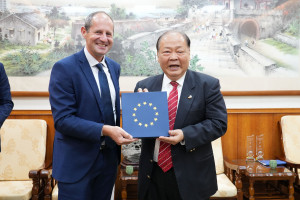 歐洲經貿辦事處長谷力哲16日上午偕同副處長路卡斯拜會澎湖縣長陳光復,雙方就臺歐經貿合作推動,以及澎湖在永續發展、文化觀光、綠色能源與青年返鄉等多元議題,進行熱絡交流。陳光復表示,歐洲經貿辦事處長期致力於推動臺灣與歐...