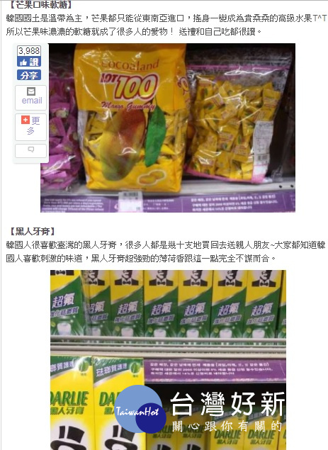 除了台灣特色水果的相關產品之外,被形容為「令人涼到頭皮也發麻」的黑人牙膏也名列清單上。(圖/截自KSD韓星網)
