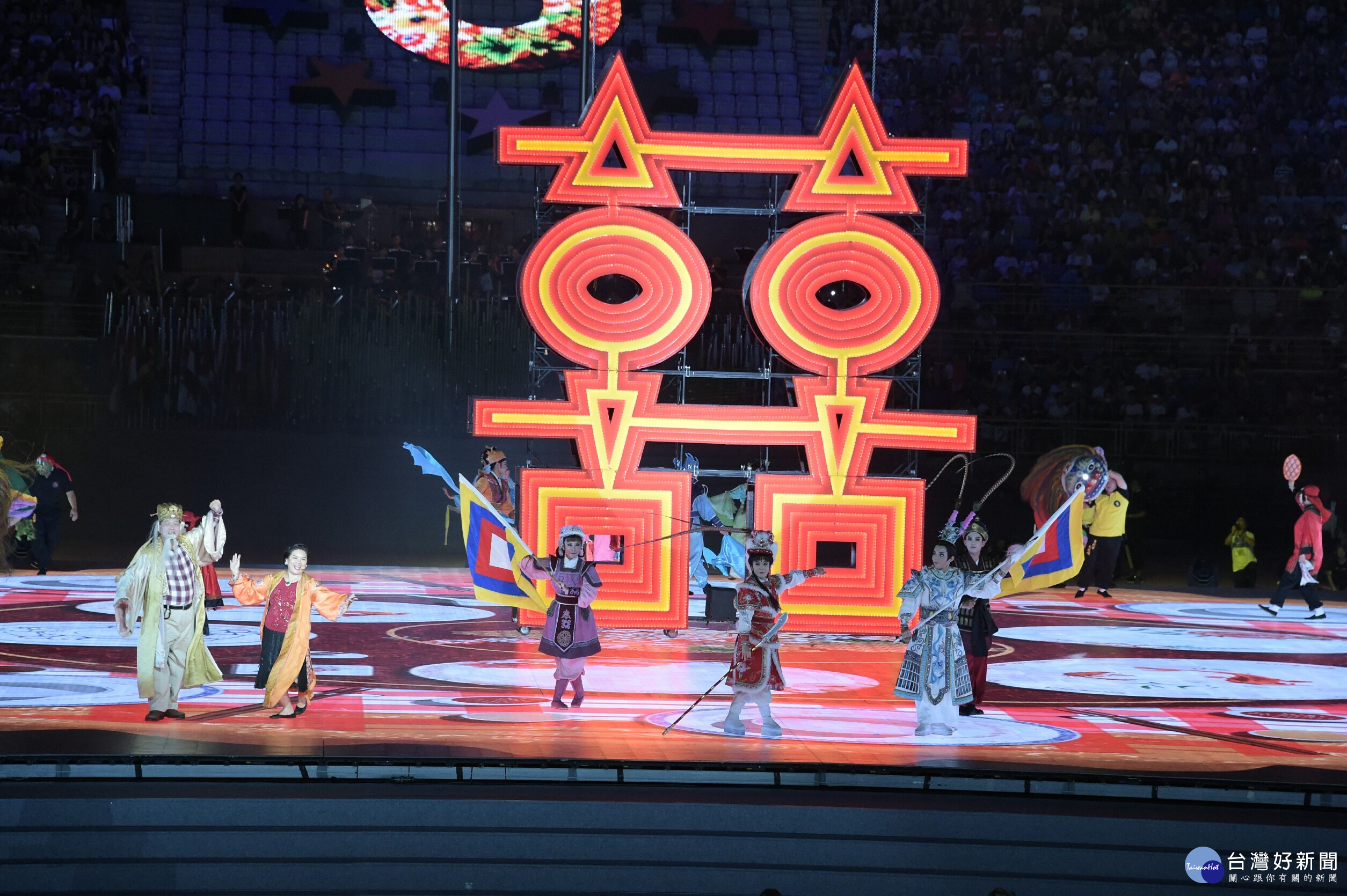 接著由「活力島嶼」表演揭開動人篇章,大批舞者舞出海洋波動意象,排列出魚游的姿態,LED地屏一下子展現出海洋潮汐、一下子是島嶼岩漿,最後以火光呈現台灣島嶼意象,地屏並展現原民圖騰,搭配原住民嘹亮美聲,驚艷全場。接續呈現台灣多樣文化面貌,匯聚客家族群、閩南族群以及民俗、戲曲融合,表現華人文化中囍慶辦桌,為賽事祈福,最後冉冉升起雙囍字樣。此刻,台北市長柯文哲與國際大學體育總會(FISU)主席馬蒂特辛一起步上紅毯、走向舞台,用喜慶氣氛,迎接世大運各國遠道而來青年選手與貴賓,立刻引起現場驚呼。接著在台北市市長柯文哲致詞、總統蔡英文宣布大會開始後,讓開幕式進入高潮,為期12天的世大運,正式開始。