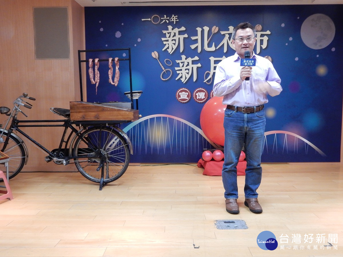 市場處長謝俊隆表示,近年來透過市府的輔導,新北夜市不論在環境、衛生或是消防安全等都大有進步,這次活動為了鼓勵民眾響應環保,還推出「你環保我送禮」活動,只要在活動當日自行攜帶環保餐具,就可以到活動服務台兌換精美小禮物,期望透過新北夜市新月祭的宣傳,讓民眾除了到新月橋一次體驗四大夜市的吃喝玩樂,也希望民眾走進新北各大夜市,感受夜市的改變。