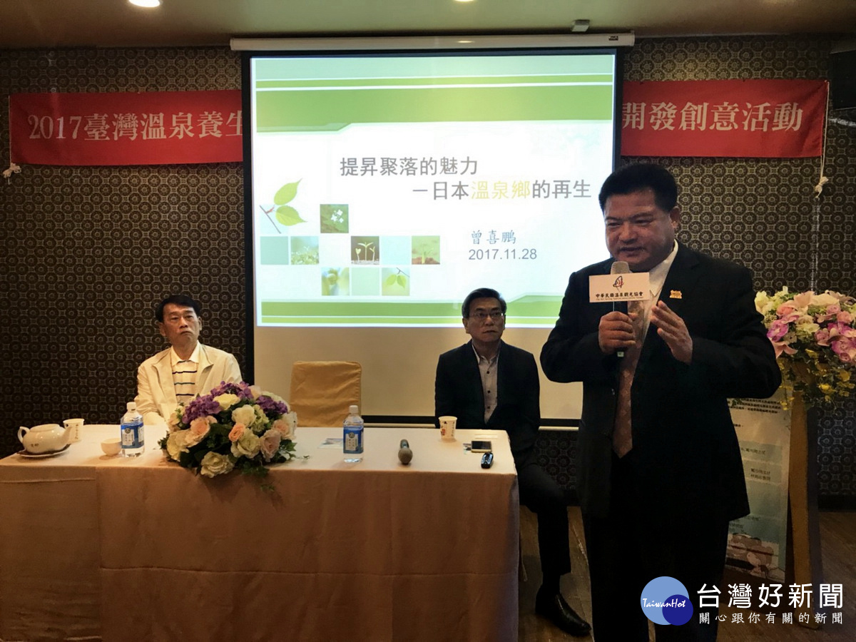 中華民國溫泉觀光協會為帶動全台各溫泉區旅遊觀光發展,於28日上午08時30分假南投縣埔里鎮金都餐廳舉辦「2017臺灣溫泉養生與美食論壇暨臺灣溫泉美食開發創意活動」,由中華民國溫泉觀光協會李吉田理事長主持,邀請全臺各地共15處溫泉區及溫泉業者百餘人出席論壇活動,共同探討各國家溫泉利用之概況實例以及溫泉療效認知及對健康促進之影響專題進行研討。