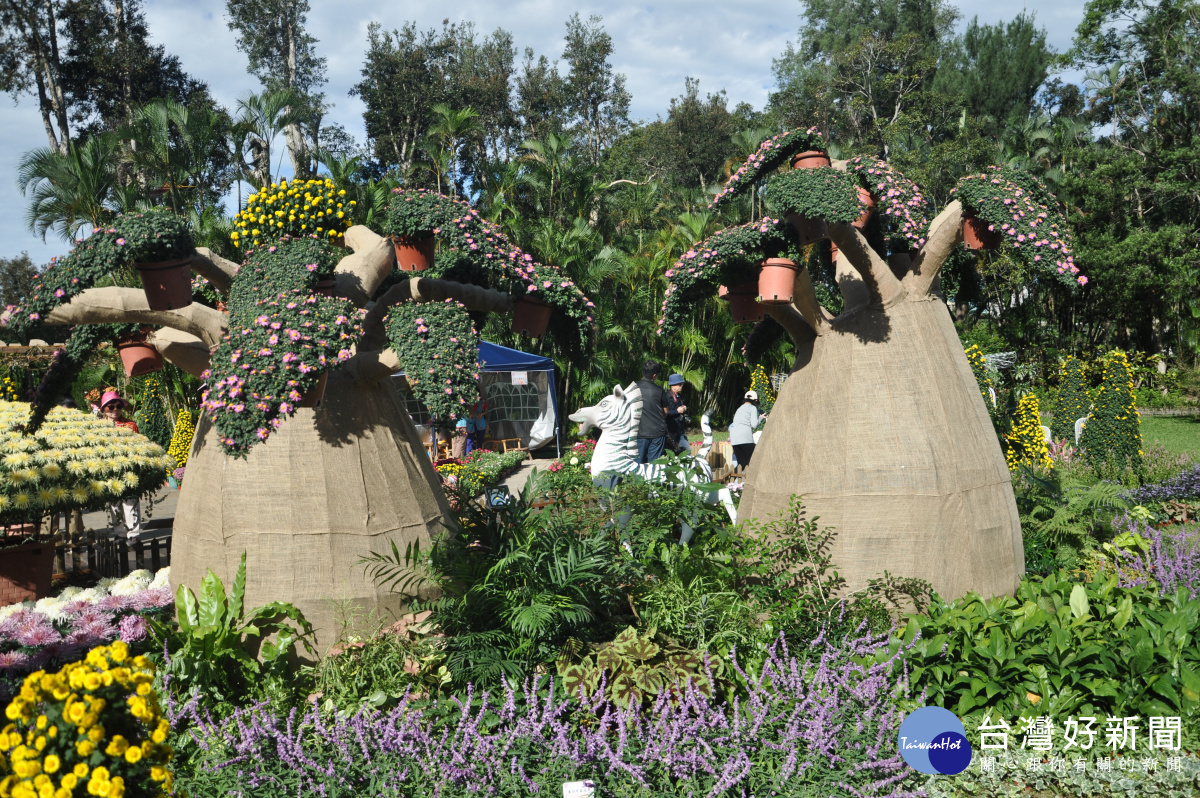 工務局公園處表示,花卉試驗中心在踏青區以馬達加斯加場景為規劃雛型,運用異物結合的概念,呈現當地的珍禽異獸、奇花異草,且以獅子、河馬、長頸鹿、班馬等串連全區。融入地域情景特色氛圍,並以菊花、菊科草花及觀葉、觀花、觀果等各式花卉植栽為元素混搭,營造出獨一無二生態的神奇國度,一個屬於菊展的馬達加斯加,相當值得前來體驗。