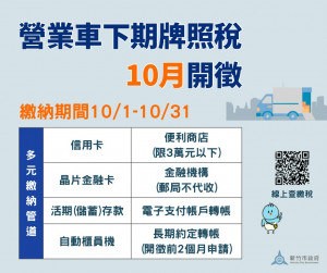 營業用車下期牌照稅10/1起開徵 竹市稅務局提醒申請歸戶便利又安心