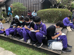 桃園楊梅國中美術術班同學90人8日下午至蕭如松藝術園區體驗枯枝畫,對園區內建築及綠色植物感覺十分有特色,穿著浴衣及木屐同學透露這種體驗有如去日本一樣真實。園區的西施狗蕊嗶也成為大家爭相作畫的...
