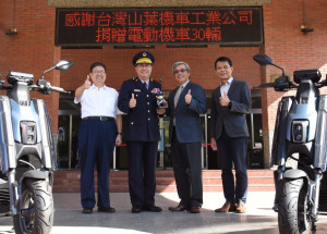 台灣山葉機車工業公司10日捐贈新竹縣政府警察局電動機車30輛,持續對地方治安及交通工作做出貢獻。捐贈儀式由楊哲昌局長代表受贈,楊文科縣長於會中表達對山葉機車公司高晴珀董事長的感謝。台灣山葉機...