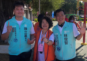 民眾黨新竹市長參選人高虹安4日至新竹市區經國路與民主路口和市議員候選人蔡文盛街頭拜票,向民眾揮手致意,許多熱情民眾關心連日來的不斷攻擊,主動上前打氣,希望高虹安挺住、穩住,並要求合照,也比出...