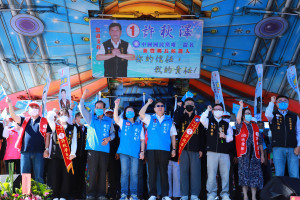 新竹縣新豐鄉長候選人許秋澤競選總部6日上午熱鬧成立,包括縣長楊文科、副縣長陳見賢、議長張鎮榮、副議長王炳漢、國民黨各級黨部負責人以及歷任新豐鄉長、各村村長、鄉民代表、社區理事長、社團領導人、...