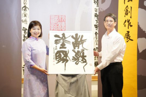 胡國龍書法創作展開幕 大師墨寶《天長地久》贈竹縣府