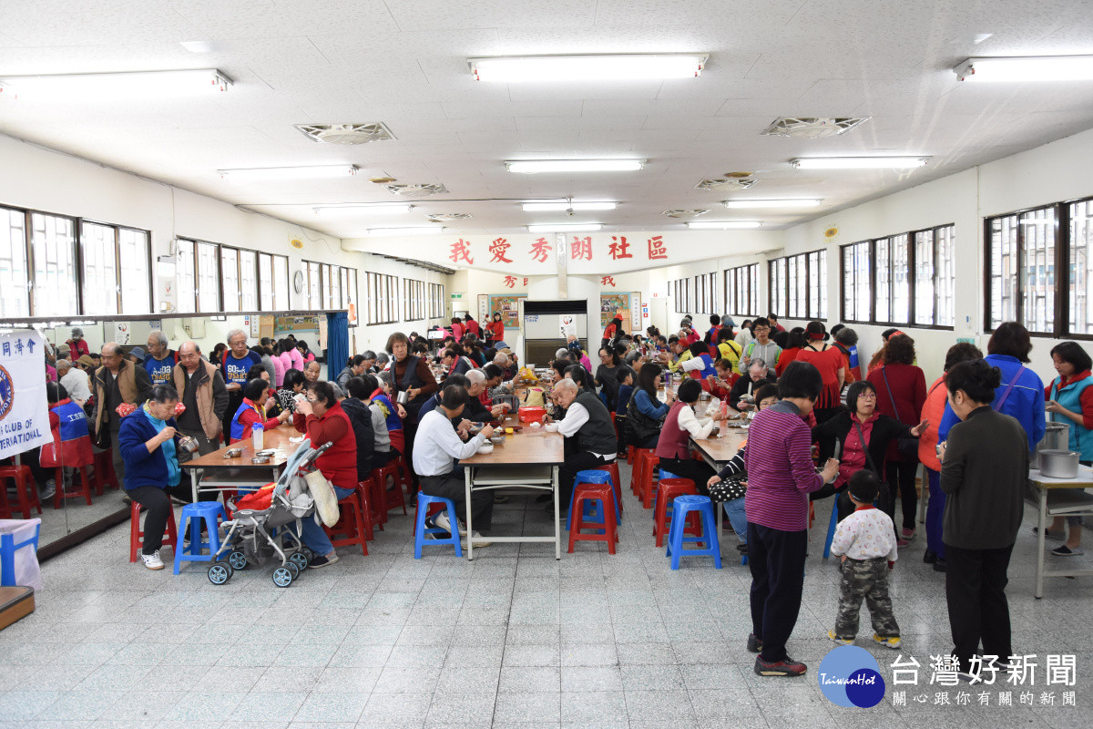 新北市永和區民樂里、秀成里與秀朗社區發展協會在秀朗市民活動中心共同辦理年終銀髮共餐Party,邀請長輩們同歡。