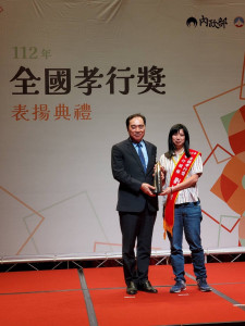 內政部為弘揚孝道倫理,藉以敦風勵俗增進社會祥和,每年均會舉辦全國孝行獎選拔及表揚活動。112年全國孝行獎表揚典禮8月29日於金門縣舉行,由行政院副院長鄭文燦頒獎。台南市民劉怡秀榮獲全國孝行楷...