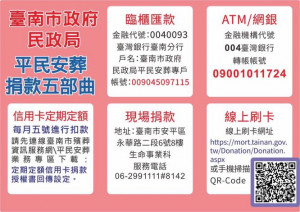 臺南市政府民政局自100年4月成立平民安葬專戶,接受各界善心人士捐款,讓居住於臺南市之低收入戶、中低收入戶、經濟弱勢及孤苦無依者透過區公所申請補助,協助處理喪葬事宜,成立至111年12月底止...
