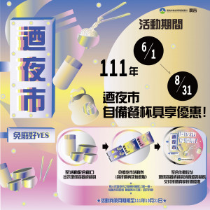夜市的飲食攤幾乎都使用一次性的餐杯具容器,過度消耗資源也產生垃圾,臺南市環保局自111年6月至8月底於15處夜市辦理「『迺夜市~免廢好YES』-自備餐具享優惠」活動,自備環保餐(杯)具於夜市...