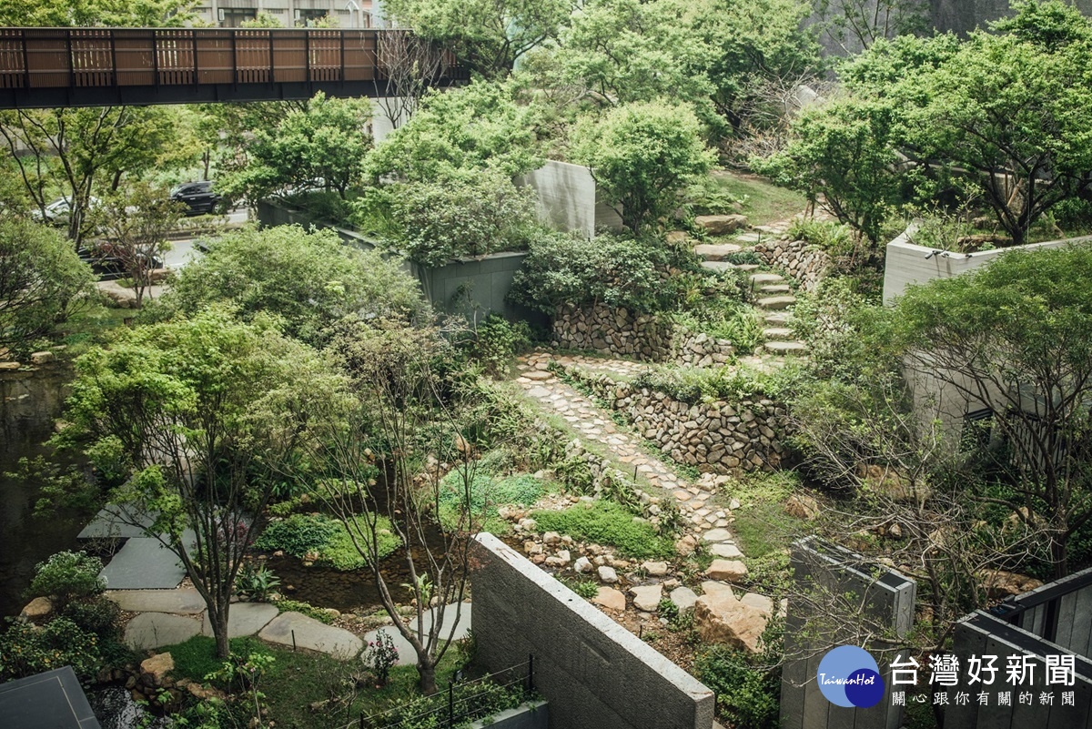 綠覆率高達217%的「若山II」在建築外觀上,仍是行人注目的焦點,但樹木的分佈與「若山I」不同。江文淵表示,「若山II」家家戶戶都有一個空中合院,種植喬木植栽,環景皆綠,增加綠覆率,這也是累積經驗後,所進行的計。