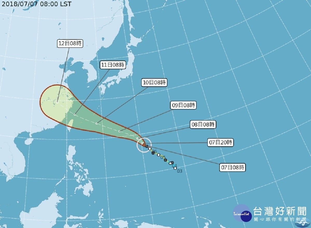 氣象局指出,瑪莉亞颱風於凌晨2時位於鵝鑾鼻東南東方2220公里的海面上,以西北轉西北西的方向朝台灣北部海面移動,因距離台灣仍遠,週末對台灣天氣沒有直接影響,下週二、週三將是颱風離台灣最近的時候,最快下週一晚間發布海上颱風警報,提醒民眾多留意颱風的最新預報資訊。