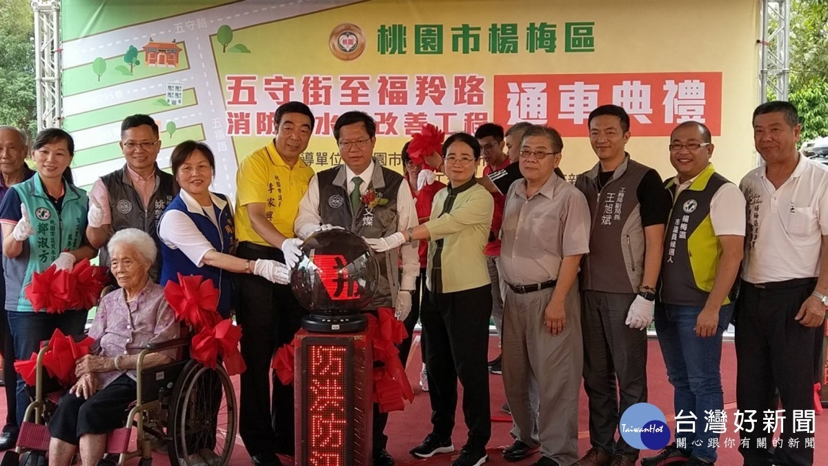 桃園市長鄭文燦主持楊梅區五守街至福羚路消防及水保改善工程通車典禮。