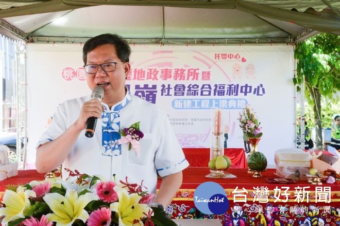 桃園市長鄭文燦14日前往中壢過嶺地區,出席「中壢地政事務所暨過嶺社會綜合福利中心新建工程上梁典禮」,鄭市長表示,該工程於去(106)年9月動工,採左右分開的雙拼設計,左側為中壢地政事務所、右側為過嶺社會綜合福利中心,工程及內裝設備等經費約5億5,000萬元,預定明(108)年7月完工,成為過嶺地區的新地標。