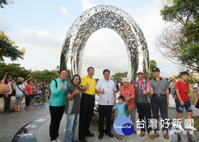 每個地方的環境藝術都有其特色,像是今日活動所在地的《健康之環》以不銹鋼製作,上面具有跑步、足球、直排輪、棒球以及親子遊戲、休閒活動的圖騰。《等待而憩.滿袋而歸》則為5座石雕作品,外型像是的放著、束著、綁著的麻布袋,能夠坐臥、攀爬及觸摸。包括桃園市議員李家興、市府副秘書長邱俊銘、文化局長邱莊秀美、楊梅區公所主秘李秀玉、楊梅副分局長楊昌祐均一同出席活動。