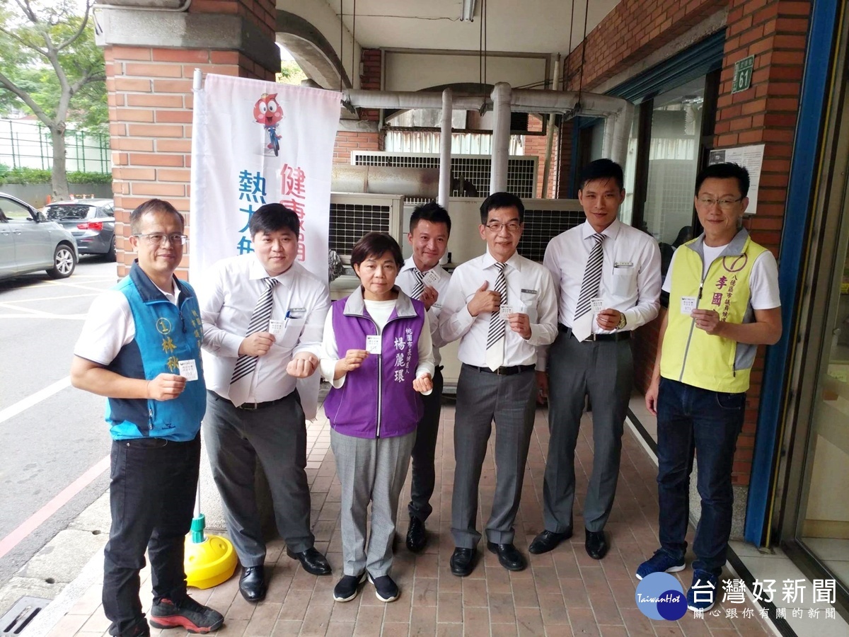 楊麗環挽袖捐血,與市議員候選人和支持民眾一起合影