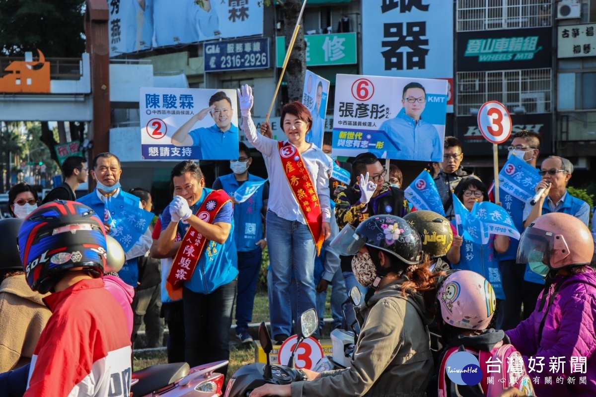 一早路過機車騎士見到盧秀燕親自在路口拜票,紛紛向盧秀燕比讚,還說這次一定要讓台中「翻盤」,許多汽車駕駛也輕按喇叭示意支持,令人倍感窩心,盧秀燕也向市民們保證,她有信心贏回台中,帶領大家一起改變未來,讓台中更好。