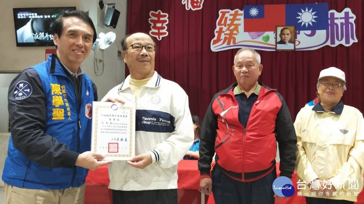 國民黨桃園市長候選人陳學聖出席國民黨桃園市平鎮區黨部所主辦的建黨124週年黨慶大會。