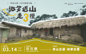 新北市政府觀光旅遊局將於 115 年 3 月 14 日(六)在深坑茶山古道「林家草厝」,舉辦「微笑近山走3徑」山林展演主題活動,結合茶文化與音樂展演及山林健走,邀請民眾走入山林、回望茶路,在自然...
