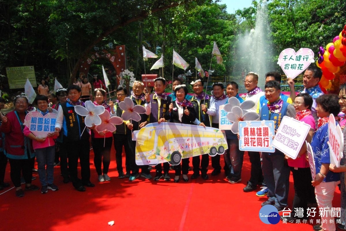 一年一度的彰化桐花祭(季)相關活動將展開彰化縣長王惠美與彰化市長林世賢(右手握紙製遊桐巴士宣牌者)等人舉行隆重記者會。