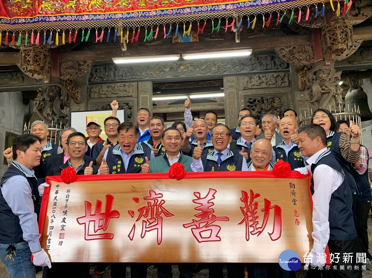 侯友宜稍早則是前往金瓜石勸濟堂參拜, 金瓜石勸濟堂為傳統道教聖廟,主祀關聖帝君,創建於西元1896 年,以「勸眾行善、濟危扶困」為堂旨,並以「庇佑群黎、 安居樂業」為宗。侯友宜特別致贈「勸善濟世」匾額, 感謝勸濟堂一直秉持著關聖帝君勸世濟民的精神, 長期為地方無私的奉獻與付出。