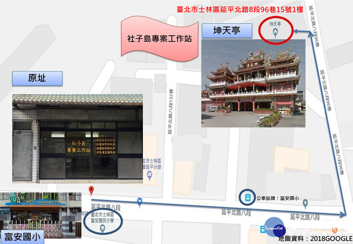 社子島專案工作站將於108年4月16日起遷移至北市士林區延平北路8段96巷15號1樓(坤天亭1樓)繼續服務當地民眾;服務時間為星期一至星期五(國定假日除外)下午2時至5時,由地政局土地開發總隊同仁駐點,提供即時諮詢服務。