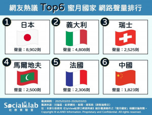 對於新婚夫妻而言,蜜月旅行是開啟婚姻生活的重要儀式,透過在異國城市的探索或海島的放鬆,為彼此留下珍貴回憶。根據《Social Lab社群實驗室》透過《OpView社群口碑資料庫》追蹤近一年「...