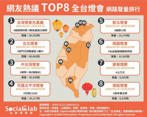 • 全台燈會網路聲量排行榜揭曉 嘉義瑪利歐燈區奪冠、台北雙國際IP話題爆棚 (11:35)
