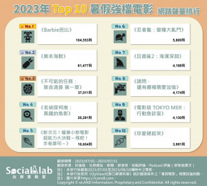 轉瞬間暑假已過去一半,你是否已經進入戲院看過電影了呢?許多強檔電影都選在暑假上映,吸引眾網友討論相關議題,關注聲量亦隨之飆漲。我們整理了近期播映中的電影熱議排行,快一起來看看!《Social...