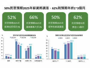 62.4%民眾預期年終獎金1~3個月,50.2%預期2025薪資會調漲3%